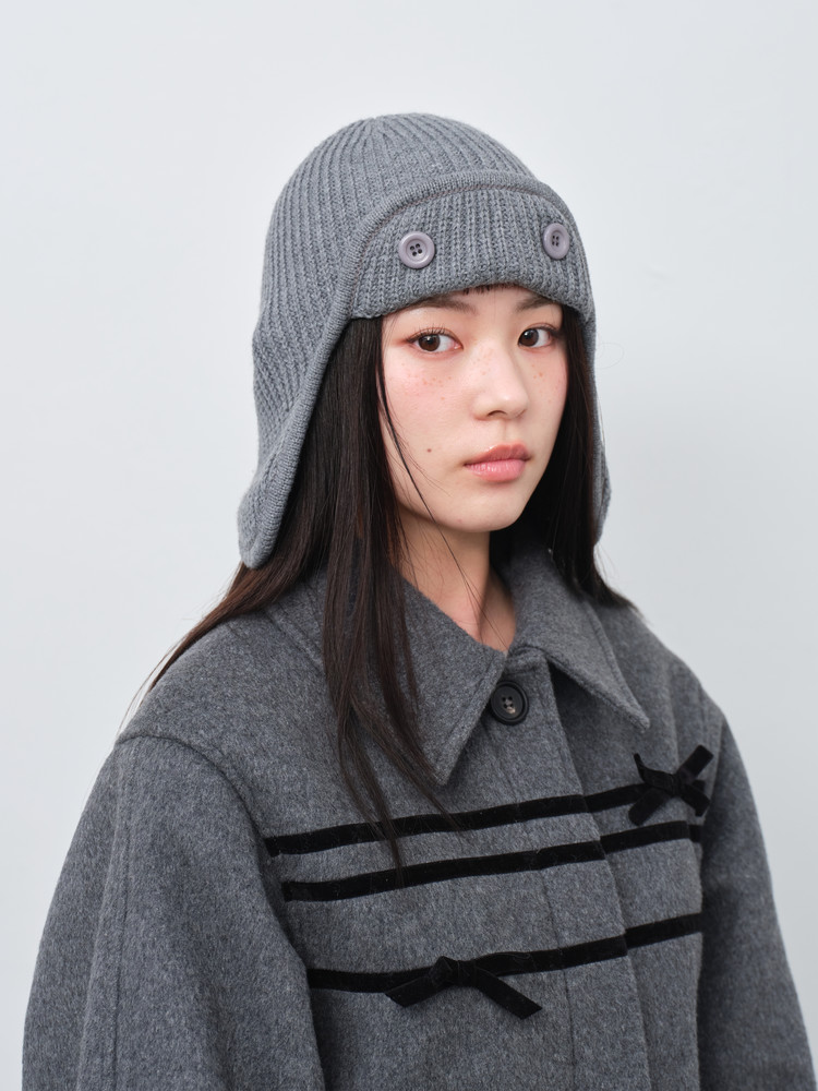 RIBBON KNIT BEANIE (GREY)
