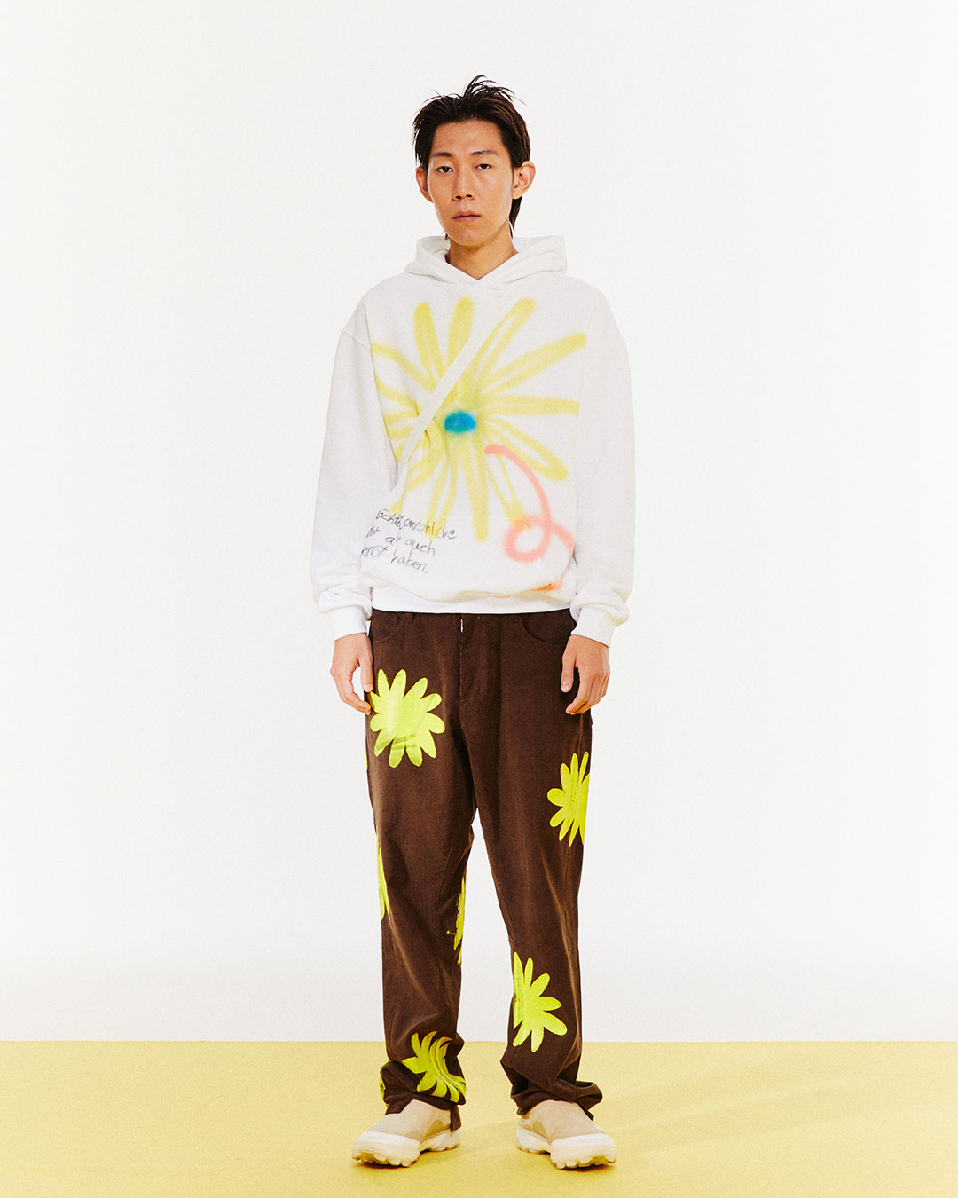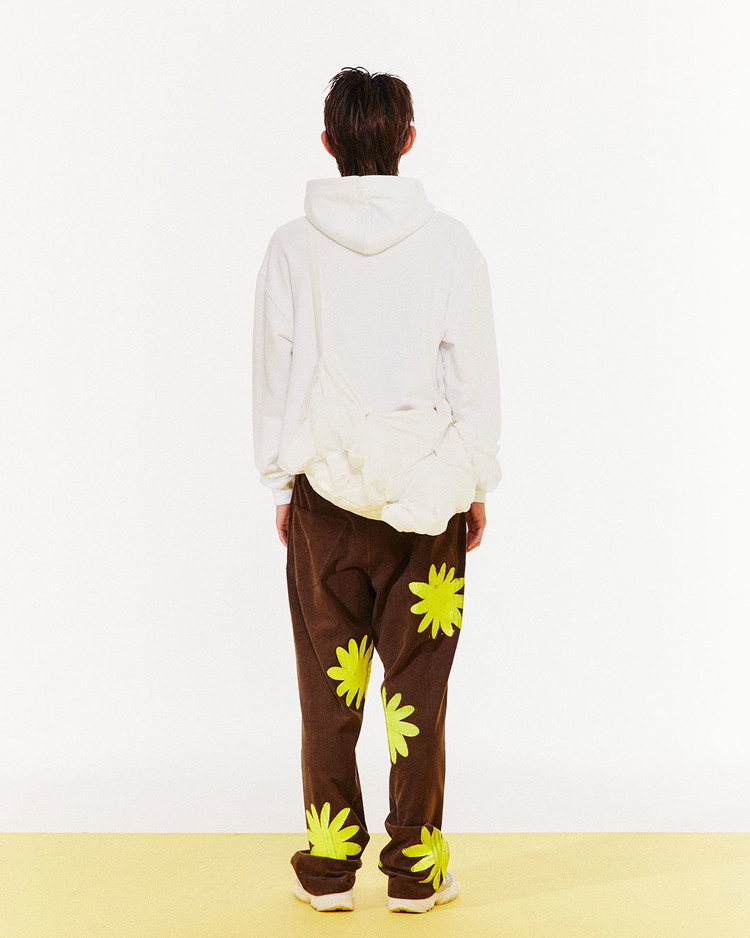 기존에 선보이는 스케치, 스프레이, 페인팅을 기본으로 이번 컬렉션에서는 브랜드에서 처음 선보인 설치 작품들의 이미지를 프린팅으로 담아내었고, 높은 난이도의 꽃 모양의 나염 작업이 눈에 띈다.