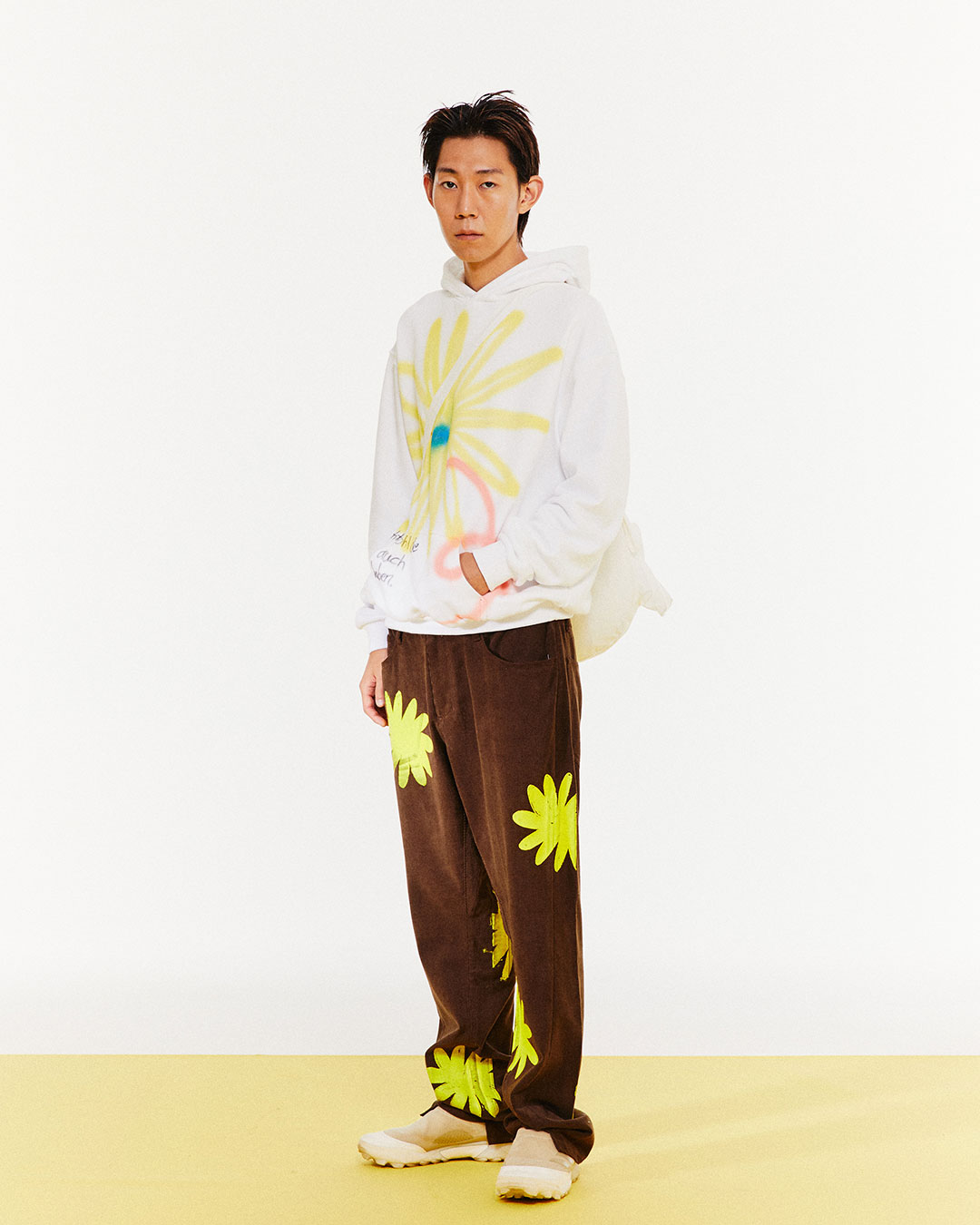YELLOW FLOWER SPRAYED HOODY